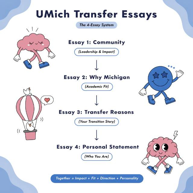 UMich isn't just looking at your numbers. They want to understand who you are, why you're leaving where you are, and why Michigan specifically. That's exactly what four essays give you the room to show.