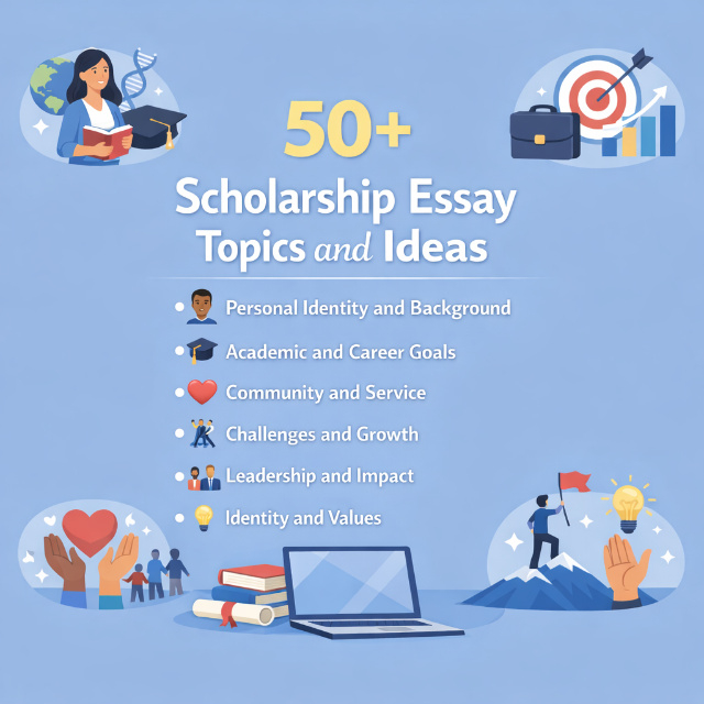 For open-ended prompts, "tell us about yourself," "describe your background," "what makes you unique," the hardest part is often just picking a topic. Here are 50+ proven scholarship essay topic ideas organized by theme. The best scholarship essay topic isn't the most impressive one; it's the one you can write most honestly.